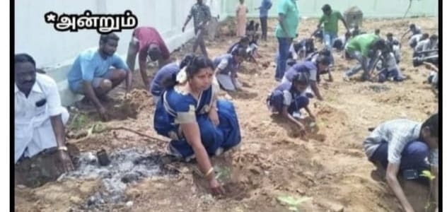 திருவாரூர்மாவட்டம் பெரும் பனையூர் ஊராட்சியில் உள்ள அரசு பள்ளி ஆசிரியர்களும் மாணவர்களும் இணைந்து அந்தப் பகுதியில் உள்ள பழைய மயானத்தை தன்னார்வத்துடன் களத்தில் இறங்கி சுத்தம் செய்து அங்கே அழகிய மரக்கன்றுகளையும் பூச்செடிகளையும் நட்டுவைத்து மகிழ்ந்தனர்.